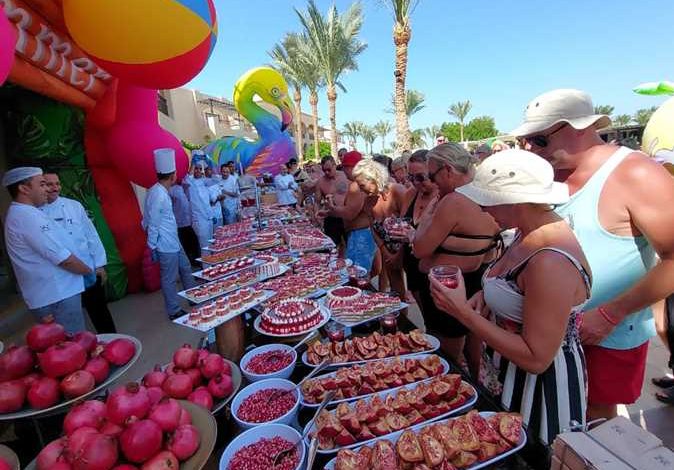 وسط أجواء احتفالية نظم عدد من الفنادق والقرى السياحية بالغردقة اليوم مهرجانًا مميزًا للرمان بمشاركة 12 شيفًا، وباستخدام نصف طن من الرمان فى إعداد عشرات الأصناف المتنوعة، وسط حضور واسع من السائحين الأجانب الذين تفاعلوا مع الفعالية وأبدوا إعجابهم بالفكرة وأجوائها وذلك فى إطار الاحتفال باليوم العالمي للرمان الأول من نوفمبر من كل عام .