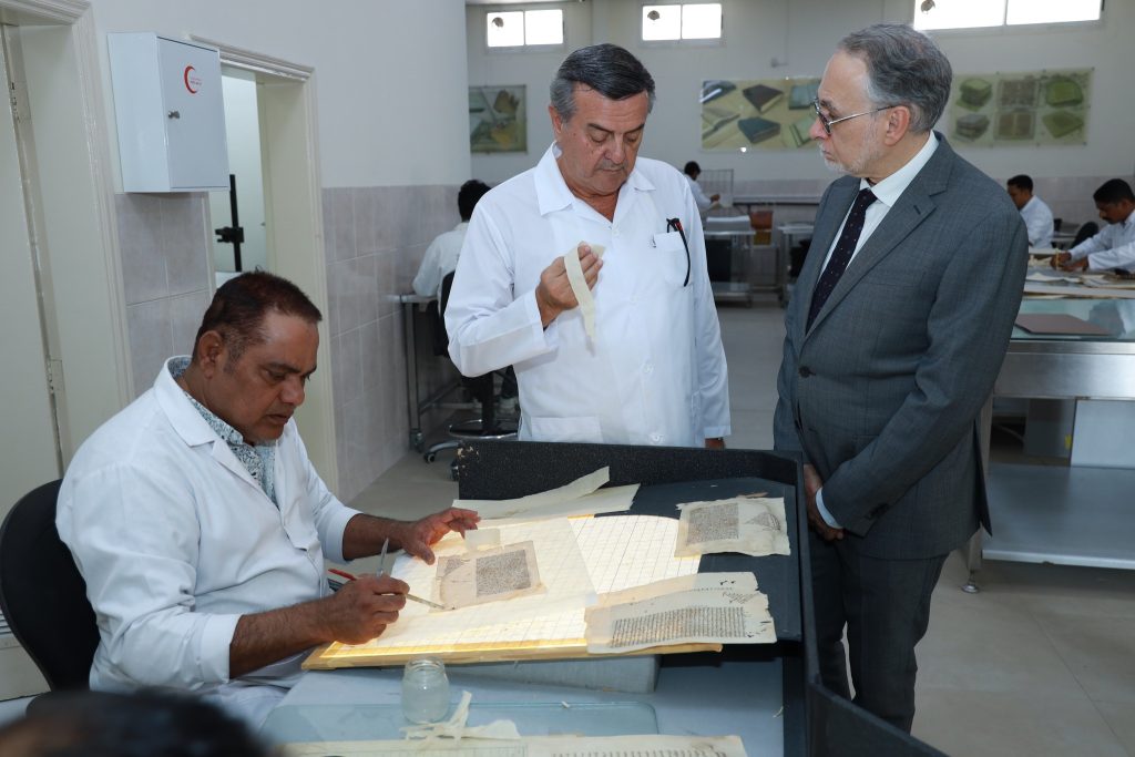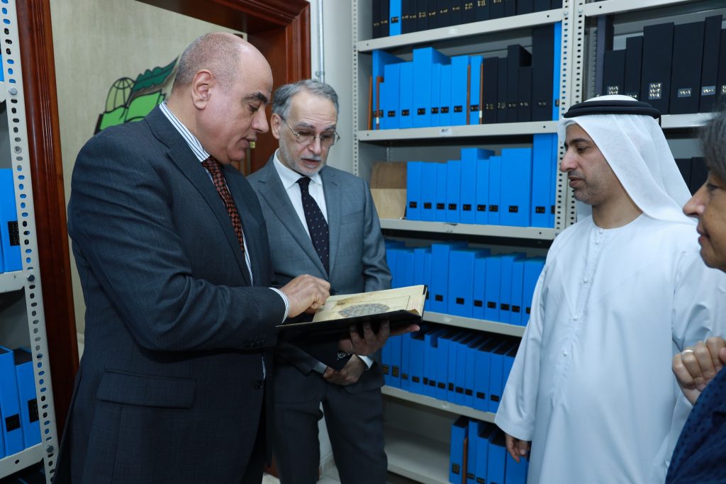 ثم توجَّه الوفد إلى قسم الحفظ والمعالجة والترميم في منطقة القصيص بدبي، حيث استمع إلى شرح مفصل قدمه الدكتور بسام داغستاني، مدير القسم، حول عمليات الحفظ والصيانة والترميم التي يجريها المركز وفق أحدث الأساليب العلمية.
