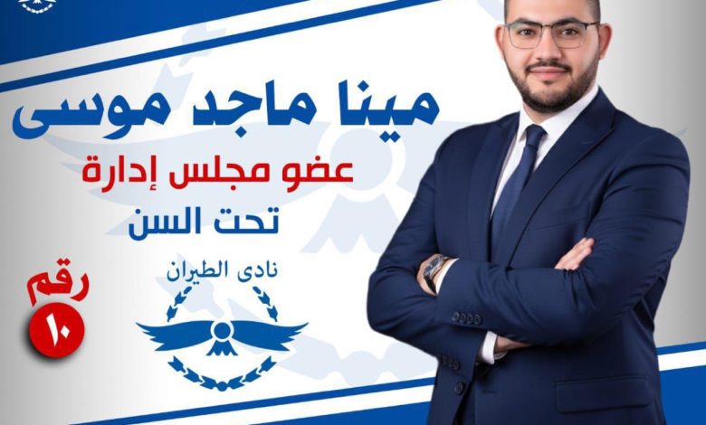 أعلن مينا ماجد موسى ترشحه في انتخابات مجلس إدارة نادي الطيران، المقرر لها 17 ديسمبر الجاري ، حيث يتنافس على كرسي عضوية مجلس الادارة تحت السن.