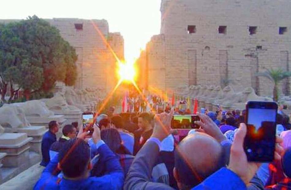 شهدت معابد الكرنك، شرقي الأقصر، تعامد الشمس صباح اليوم الأحد، وهي ظاهرة فلكية تُعد ضمن أكثر من 22 ظاهرة فلكية تشهدها المعابد المصرية.