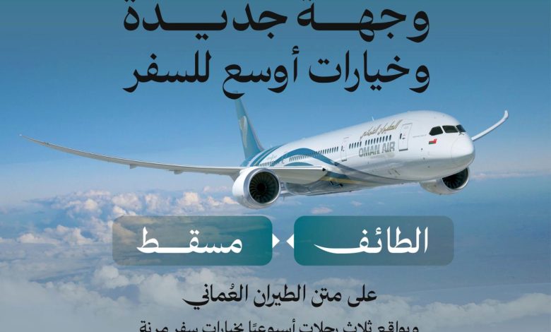 “الطيران العماني” تطلق رحلاتها بين مسقط والطائف في السعودية 31 يناير المقبل