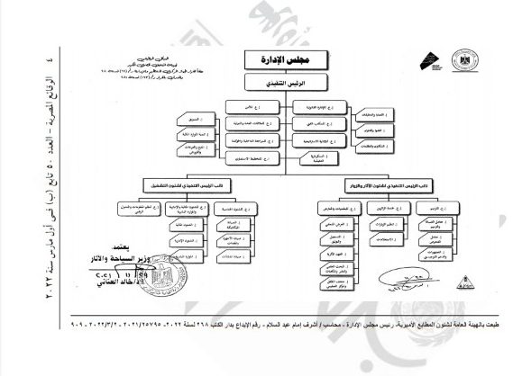 أصدر شريف فتحي وزير السياحة والآثار، قراراً وزارياً باعتماد الهيكل التنظيمي الجديد لهيئة المتحف المصري الكبير، وذلك في ضوء صدور قرار رئيس الجهاز المركزي للتنظيم والإدارة بشأن اعتماد جدول وظائف هيئة المتحف.