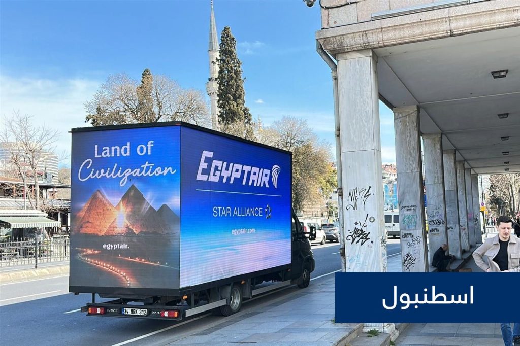 اعتمدت مصر للطيران على مزيج متكامل من الوسائل الترويجية، شملت إعلانات وسائل النقل العام، واللافتات على الطرق، وداخل المراكز التجارية، إلى جانب الحملات الرقمية عبر منصات التواصل الاجتماعي ومحركات البحث.